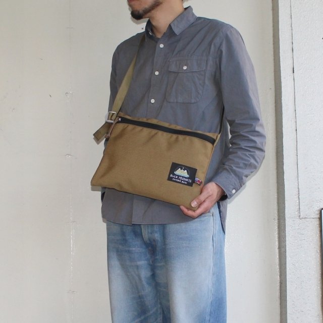 ミルスペックの基準をクリアした、軽量かつ強度の高い1000Dのコーデュラナイロンを使用した『BUCK PRODUCTS』のミニショルダーバッグ。