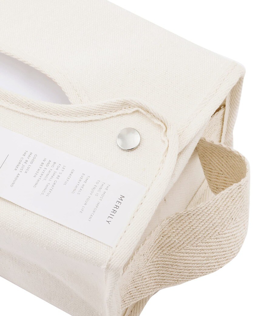 側面にループが付いており、置き型・掛け型の2WAYで使えるBOXティッシュ用のケースです。高さがあるため、厚型の箱も入ります。スナップボタンで開閉できることから、中身の入れ替えもらくちん!場所を選ばないナチュラルなデザインなので、室内はもちろん、車などでもお洒落に使えます。