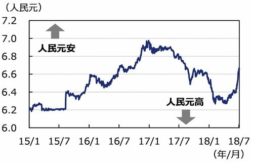 まず、図表1、図表2を見ると、貿易、知財問題などへの懸念もあり、足下で中国株安、人民元安が進行していることが分かります。