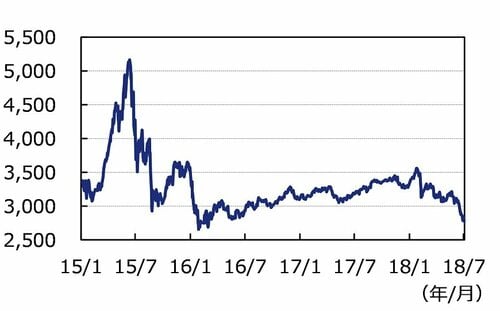 このような状況の中、上海総合指数は年初来で約17%下落しています。これまで、株価が急上昇していない中での下落は、貿易、知財問題の影響を市場が相当心配していることの表れであると考えます。