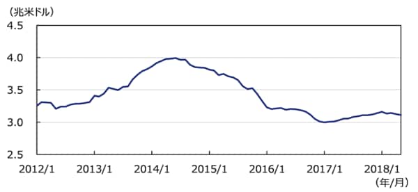 この外貨準備の減少傾向は、2016年末頃に底打ちし、人民元も2017年は人民元高・米ドル安方向に動きました(図表1、および前回記事図表2)。
