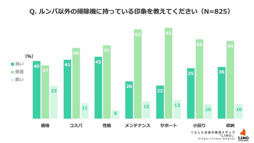 最後に、ロボット掃除機の元祖で代表的存在とも言えるiRobot社のルンバシリーズ以外のロボット掃除機に抱く印象を、