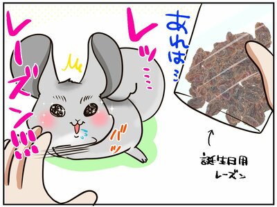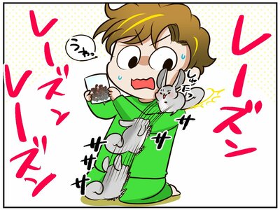 そんなあみだちゃんはレーズンも大好き。祭さんがレーズンの袋を取り出すと、中身を察知してなりふり構わず突撃です!