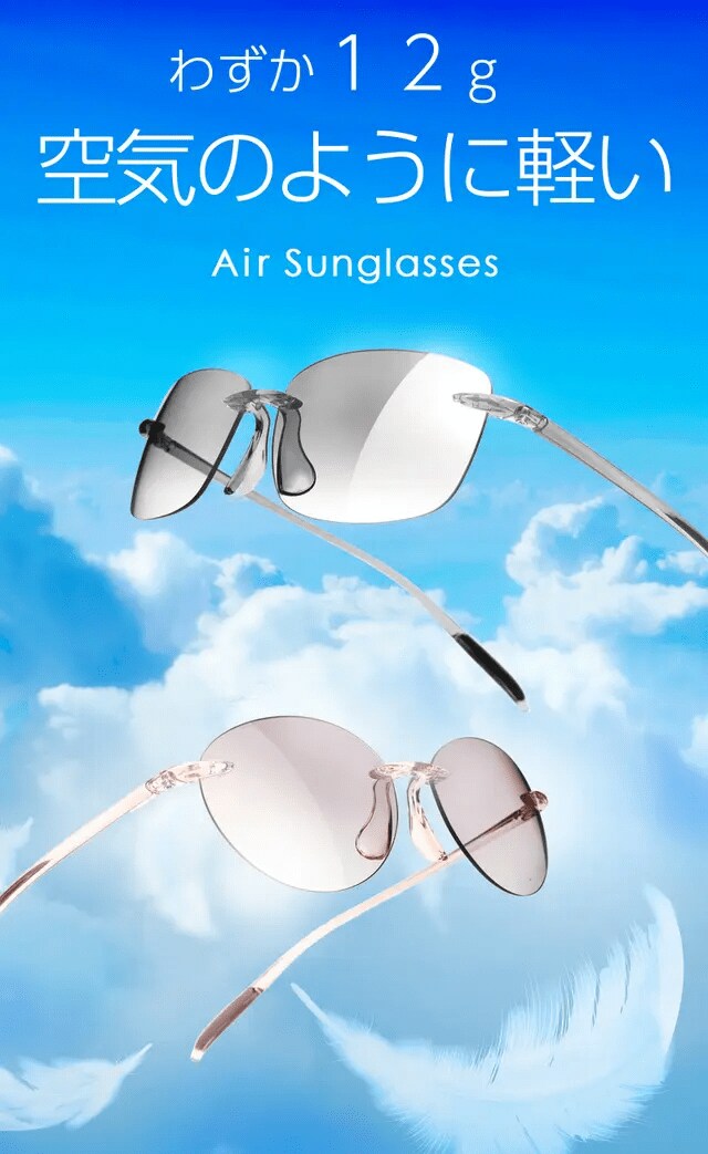 エアーサングラスの最大の特徴となるのが、その軽さ!驚きのたった12グラムとつけていることを忘れてしまうかのような軽さなんです。