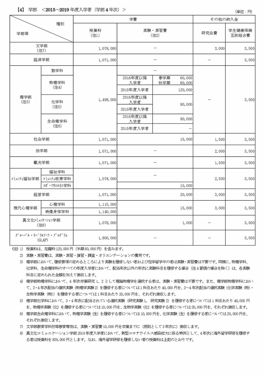 続いて、立教大学法学部法学科を4年間で卒業した場合にかかる費用を紹介します。
