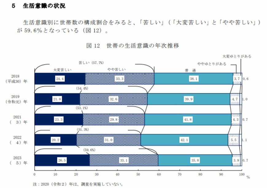 1. 生活が苦しい世帯は59.6%!前年から増加