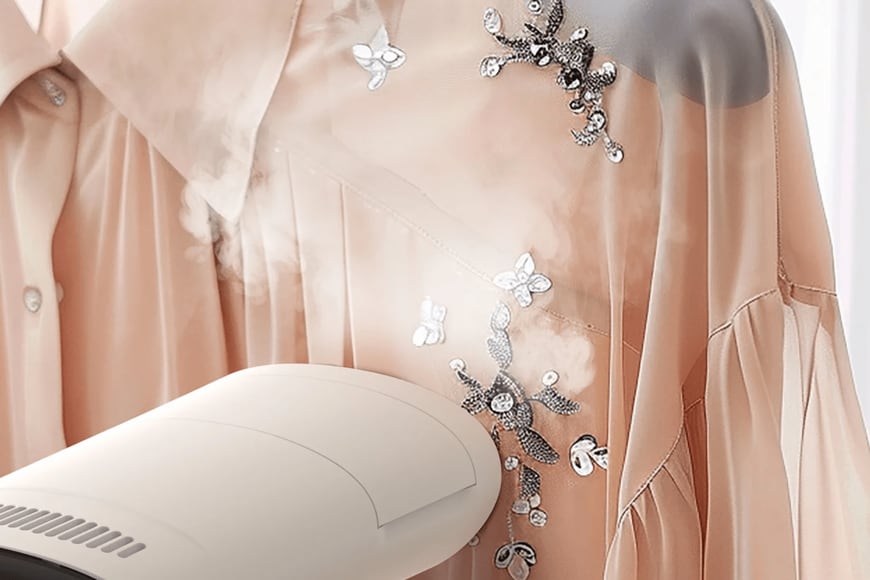 アイロン台の必要がないからこそ、刺繍やビジューのついた繊細な洋服にも使用可能。さらに身近な布製品にも使え、高温スチームが繊維の奥深くまで浸透することによって手軽に除菌もできるんです。