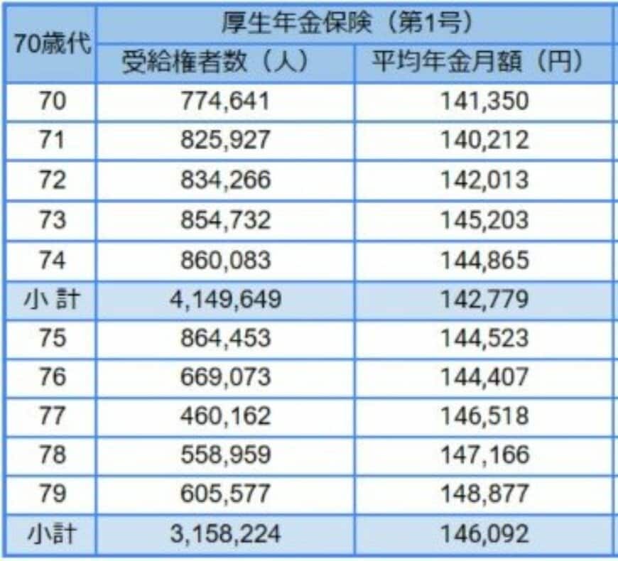 6. 【厚生年金・一覧表】60歳代~80歳代の平均月額