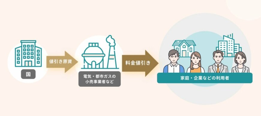 酷暑乗り切り緊急支援では、電気や都市ガスの小売事業者などが、家庭や企業などに請求する月々の料金から「使用量に応じた値引き」を行ってくれます。