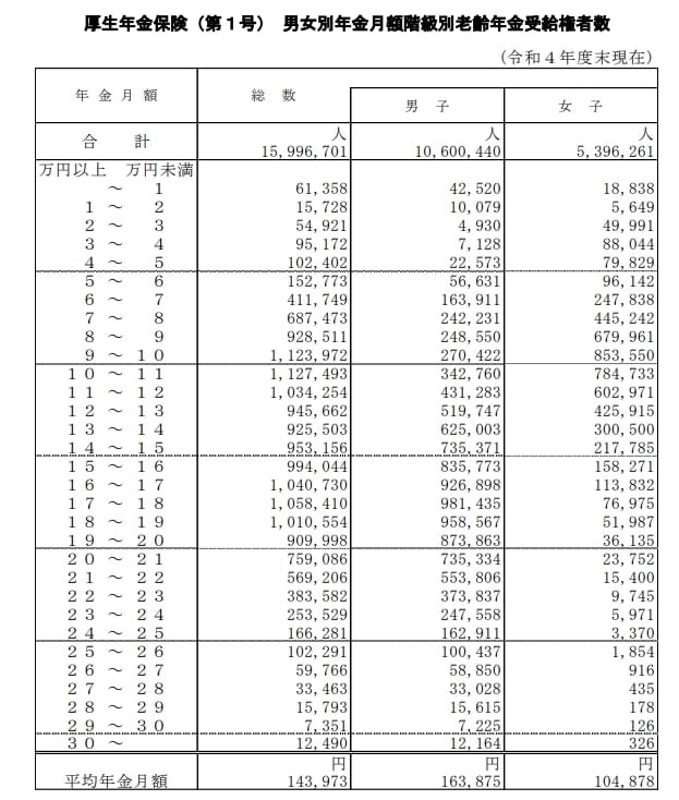 「令和4年度厚生年金保険・国民年金事業の概況」では、年金月額ごとに、どれくらいの受給権者がいるのかも把握できます。