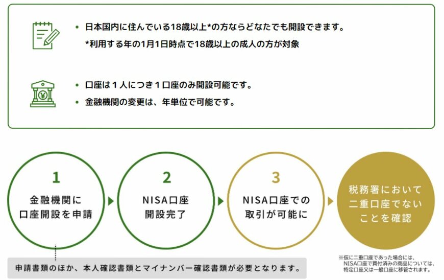 また、新NISAの口座は「1人につき1口座のみ」と決まっています。