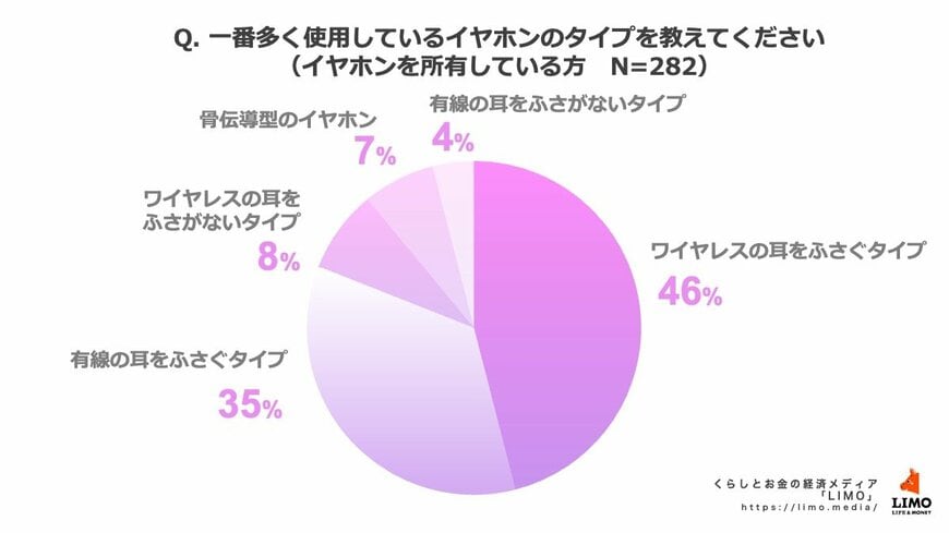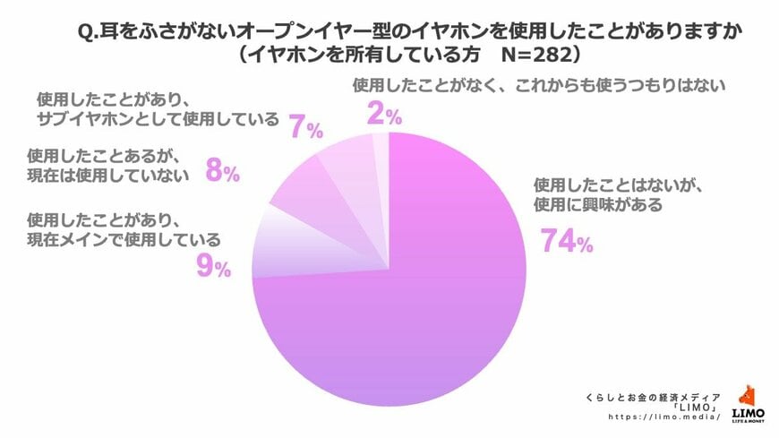 先の結果より耳をふさぐタイプのワイヤレスイヤホンが主流となっていることがわかりましたが、本結果より今後のオープンイヤー型イヤホンの広がりに注目がもてるといえるのではないでしょうか。