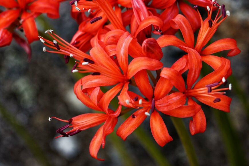 「ダイヤモンドリリー」とも呼ばれるネリネは、花弁に光沢があり、光が当たるとキラキラと光る美しい宿根草です。茎の先に小さなユリのような花をいくつか咲かせ、華やかながらも気品が感じられます。鉢植えがおすすめです。