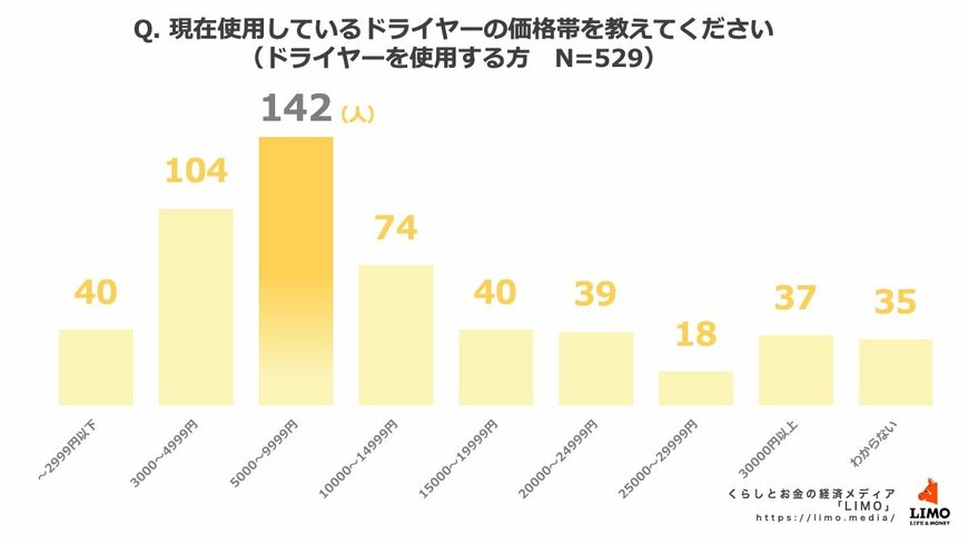 ヘアドライヤーを使用している529名を対象に、現在使用しているドライヤーの価格を調査したところ、結果は以下の通りとなりました(※価格順)。