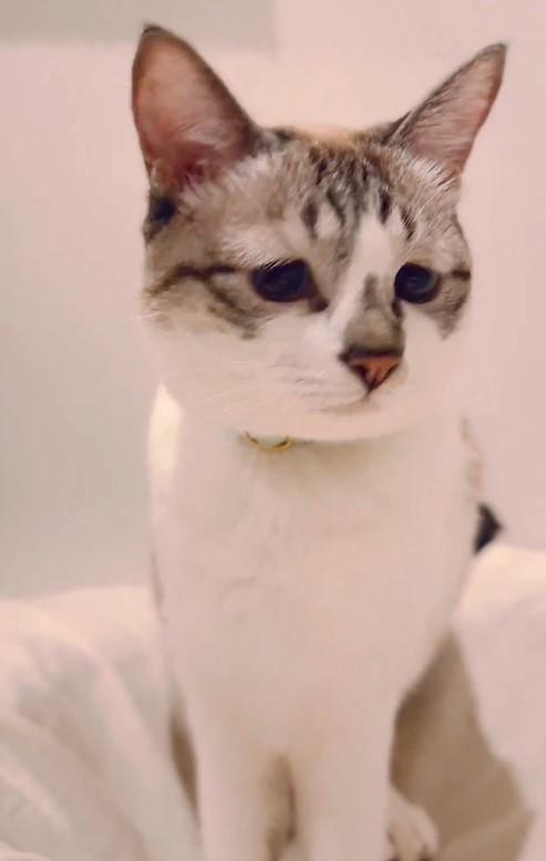 話題となっているのは、ションボリ顔がチャーミングな“ミントちゃん”という猫ちゃんです。お布団の上にちょこんと座り、静かに一点を見つめていました。