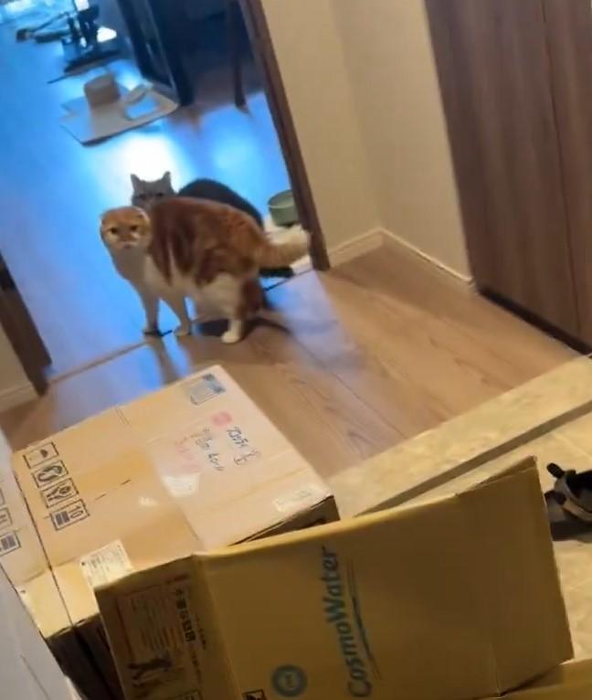 投稿には「2匹でトコトコ走っていく後ろ姿かわいい」「振り返るのも一緒なのかわいい(笑)」「ネコちゃんの鈍臭い逃走からしか得られない栄養素がある……」といったコメントが寄せられました。