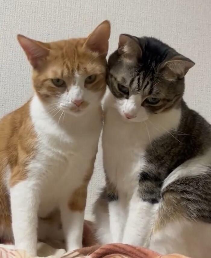 毛づくろいが終わったようで、動きが止まった2匹。なんだか「お互いの顔の距離」がとっても近いように見えますが、2匹は落ち着いているようです。