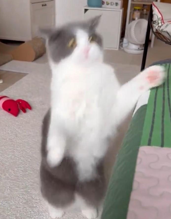 コメント欄には「可愛すぎる(号泣)」と癒されたという声に加えて「アニメみたいでかわいい!爆笑」「リアクション最高ww」「こんな動きの猫ちゃん初めて見た!」「絶対人が入ってますよ(笑)」など、驚いた人からのコメントがたくさん届きました。