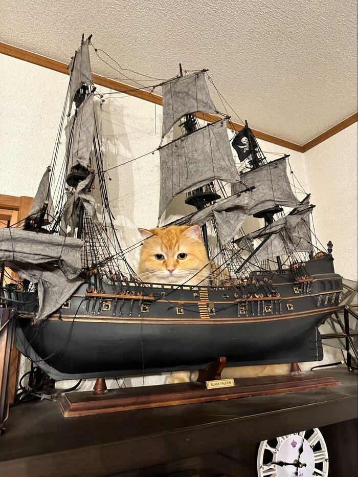 この日は、飼い主さんが「いない…」と探し回っていたら、船の模型に紛れて出航準備をしていたようです。思わず笑ってしまう隠れ姿には4万件のいいねが集まる大反響となりました。