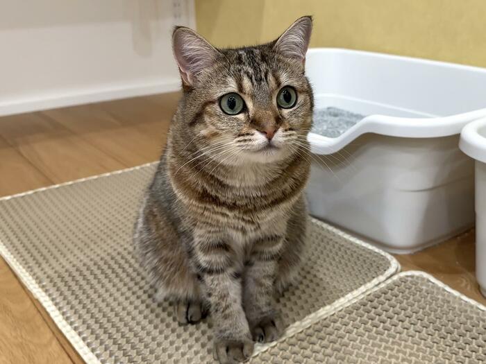 写っているのは、猫ちゃんのトイレ掃除をする飼い主さんが撮影した光景です。