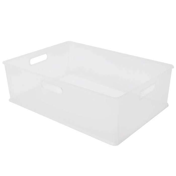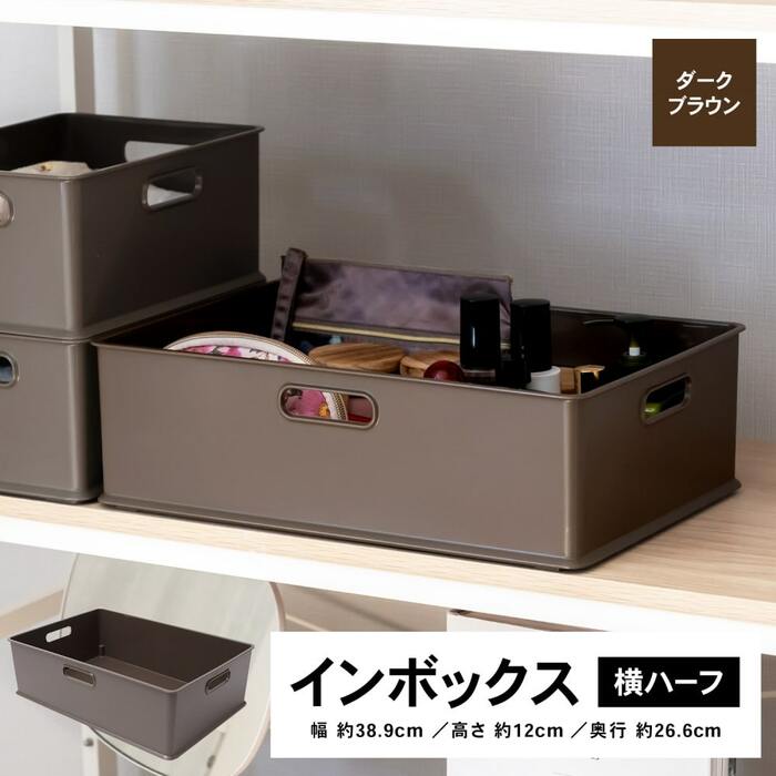 インボックスレギュラーの高さだけが低くなった「インボックス横ハーフ」。「A4サイズの収納に便利」との声があり、書類の整理整頓にも重宝しそうなアイテムです。棚の高さに合わせて重ねて置けるのも嬉しいポイント。こちらの商品もホワイト、クリア、ダークブラウンの3色展開です。