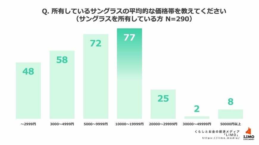 【サングラスに関する独自調査】価格帯は10000〜19999円が人気