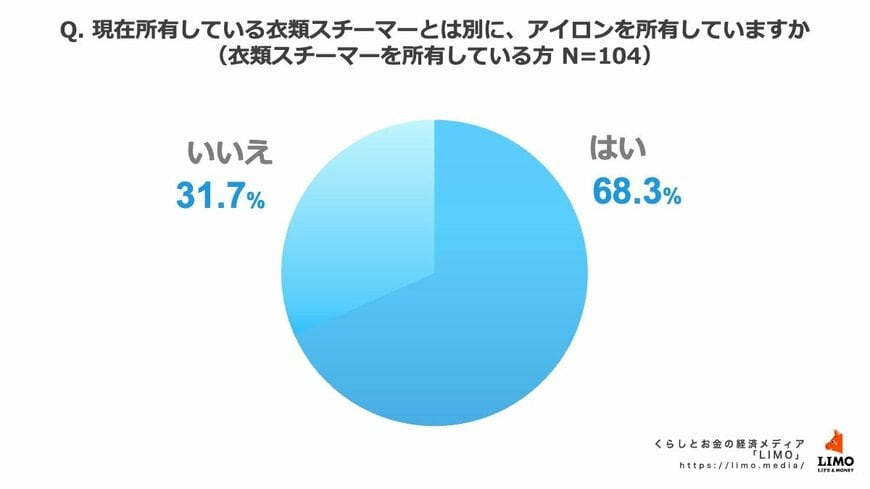 先の設問で「所有している」と回答した方に、現在所有している衣類スチーマーとは別にアイロンを所有しているかどうかを調査しました。結果は以下の通りです。