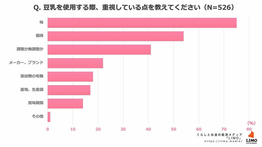 豆乳を購入する際に重視する点について質問したところ、以下の結果となりました。