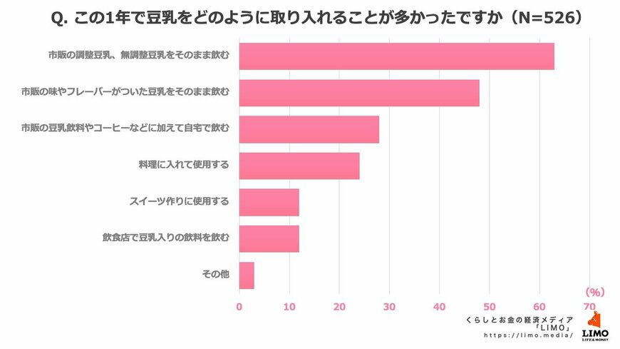 「この1年で、豆乳をどのように取り入れることが多かったか」を調査しました。結果は下記の通りです。
