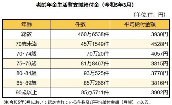 また、年齢別にみた老齢年金生活者支援給付金の平均給付金額は以下のとおりです。