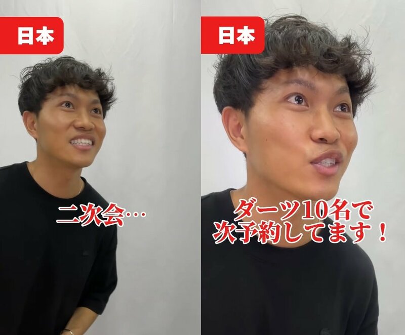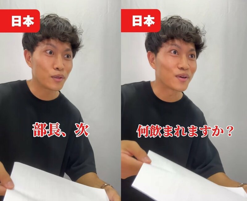 続いて日本の飲み会。部下らしき若者が部長の注文を伺っています。