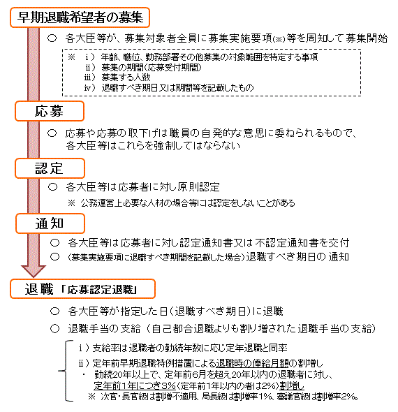 ちなみに、「応募認定」とは早期退職募集制度を指し、定年前に退職する意思を有する職員に対し、退職金額が自己都合退職よりも割増される制度です。