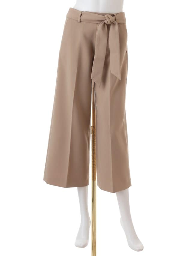 こちらはセンタープレスが施され、上品できちんとした印象のあるガウチョパンツ。ウエストの後ろ部分だけがゴムになっているため楽な穿き心地で、付属のリボンをつければより女性らしさもプラスできます。