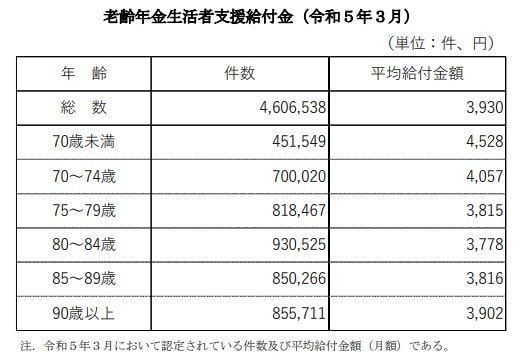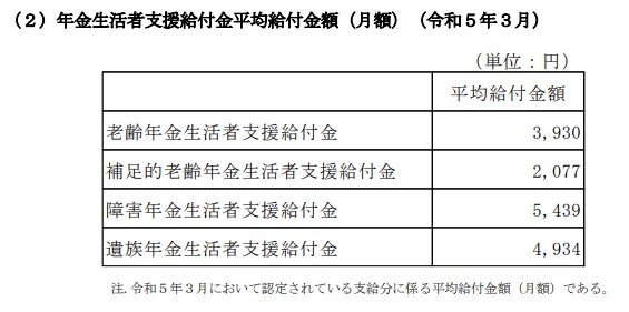 厚生労働省年金局「令和4年度 厚生年金保険・国民年金事業の概況」によると、年金生活者支援給付金の平均給付金額は以下のようになっています。