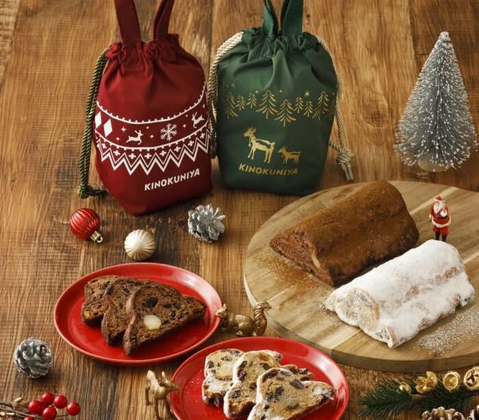 紀ノ国屋では、そんな人気バッグと一緒に季節のお菓子がセットになった限定商品を販売しています。今回、クリスマスシーズンを前に発売がスタートしたのが、クリスマスデザインの巾着袋に入ったシュトーレンです。毎年話題の紀ノ国屋のシュトーレン。店頭カラーに加えオンラン限定カラーも登場し、注目が集まっているようです。