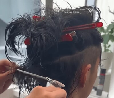目にかかるような長い前髪と、耳にもかかっているサイドの髪をバッサリとカットしていきます。