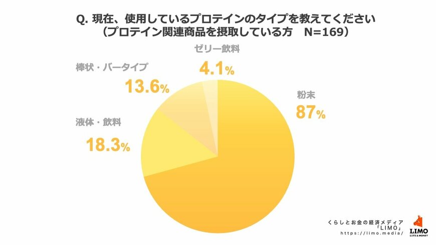 くらしとお金の経済メディア「LIMO」を運営する株式会社モニクルリサーチでは、読者を対象にさまざまなカテゴリーのアンケートを実施し、ユーザーの本音を調査しています。今回はプロテインの摂取状況やタイプ、摂取歴、頻度、摂取する理由などについて調査を実施しました。