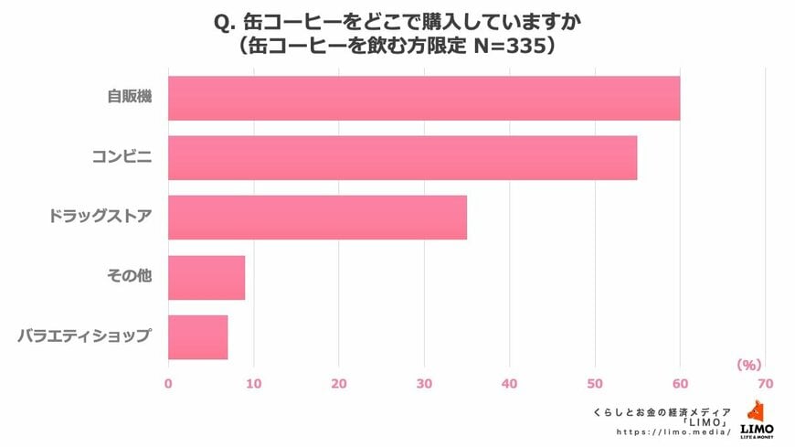 缶コーヒーを飲む方を対象に、缶コーヒーをどこで購入しているかを調査しました。結果は以下の通りです。