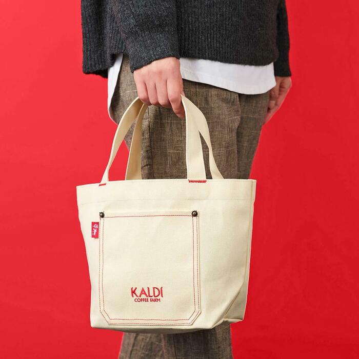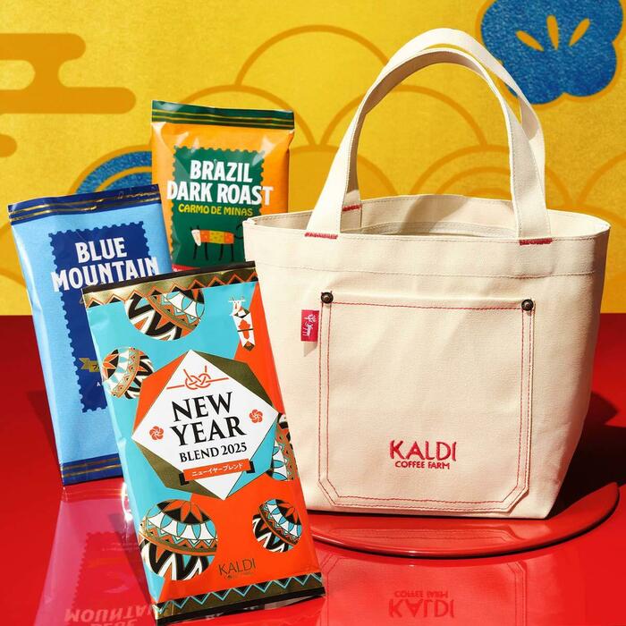 カルディの人気コーヒーが3点入っています。どの福袋にするか迷った方はこちらがおすすめです。バッグは、赤い刺繍でKALDIのロゴが入っているかわいいデザインです。