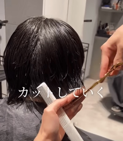 長かった髪の毛を繊細な手つきでカットしていきます。必要に応じバリカンも入れていきます。
