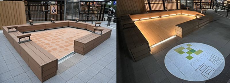 きた西口改札付近には、将棋駒の形をした休憩ベンチが設置。夜には足元が光って雰囲気のあるベンチになっています。「将棋のまち高槻」のロゴ入り照明が光る仕掛けもあり、夜までたっぷり遊んだ帰りにチェックしたいですね。