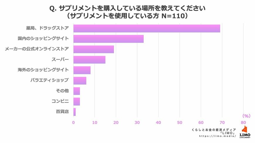 【サプリメントに関する独自調査】購入場所は「薬局・ドラッグストア」が約7割