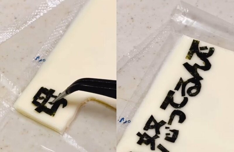1. 【嫌がらせ弁当】海苔とピンセットでチーズの上にメッセージをタイピング...!