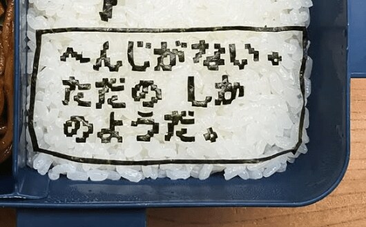 そんな、コメントと共に投稿されたのは、白米の上に海苔の切文字が描かれたお弁当の写真でした。