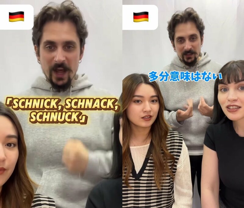 そしてドイツ語の「じゃんけんぽん」は、「schnick、schnack、schnuck」。