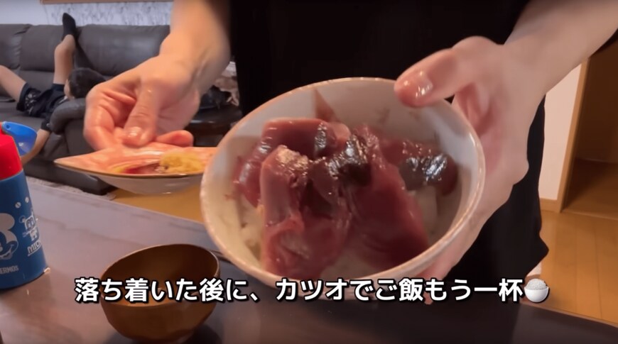子供といっしょでは食事も落ち着いてできないですよね。お母さん、日々お疲れ様です。そしてカツオのお刺身の丼、本当に美味しそう...。