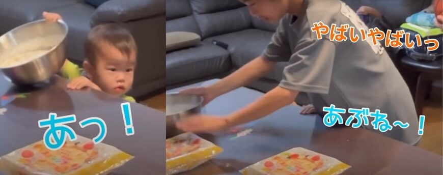 今日は早速末っ子の「きょうじ」くんが、デコレーション用の生クリームが入ったボウルをひっくり返す危機が!