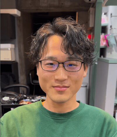 ショウさん曰く「メガネが非常に似合ってるお客様で、なるべく現在の雰囲気から離れすぎないようにけど気分転換できるように整えました」