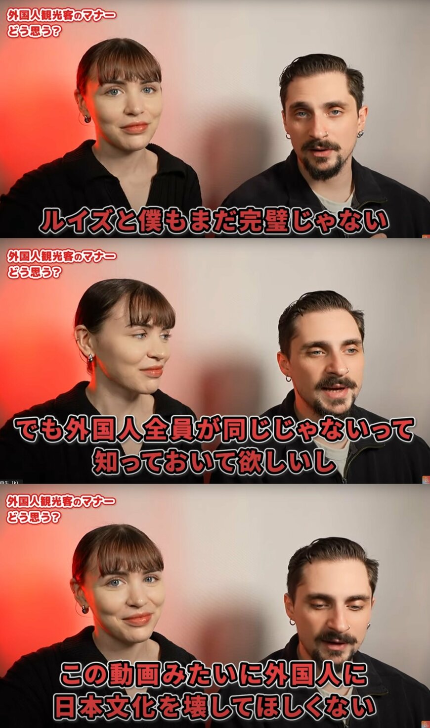 「日本人だって迷惑行為してる人はいる。実際そういった動画も少なくない。外国人ばかり責めるつもりもない。こちりも勇気を持って注意する努力をします」