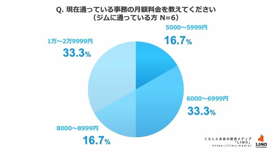 【ジムに関する独自調査】ジムの月額料金は「6000~6999円」が33.3%